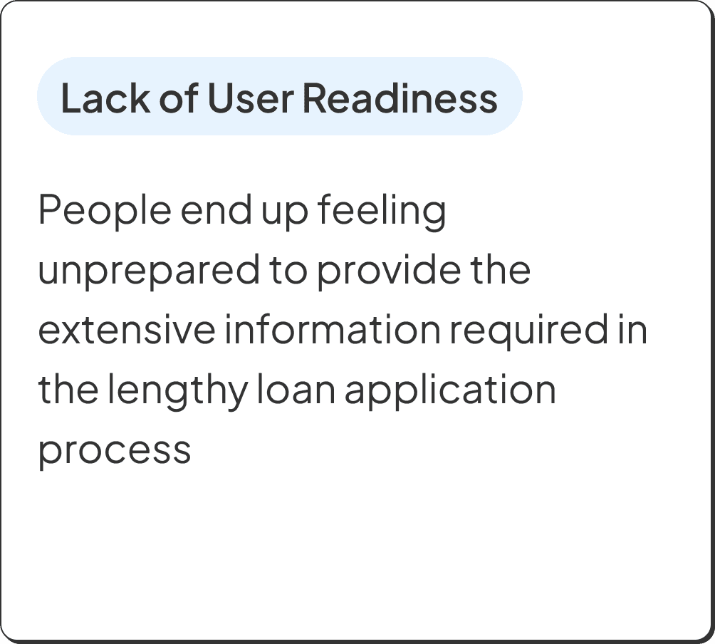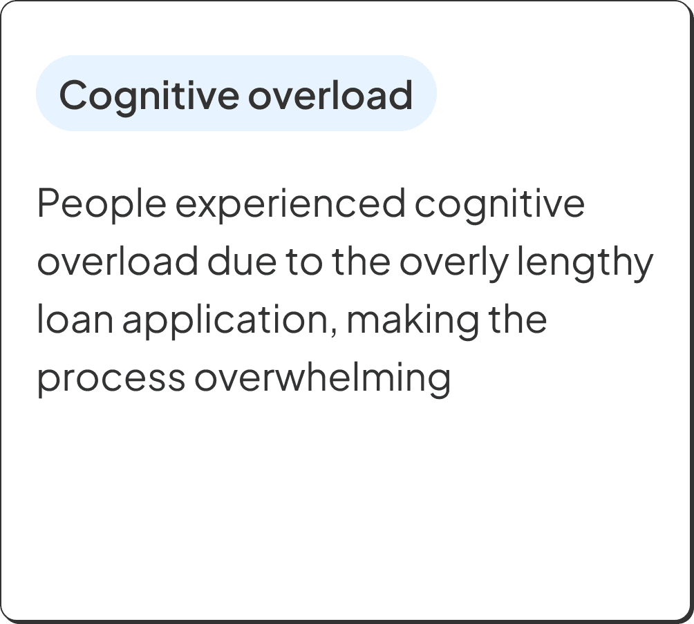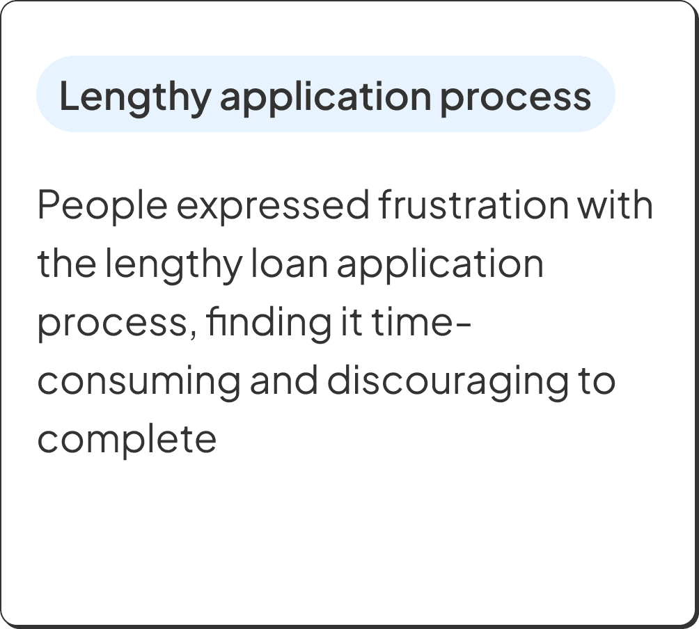 We spoke with 12 users to understand their views on loans and why they dropped off—some had only signed up, while others started the application but didn’t finish.