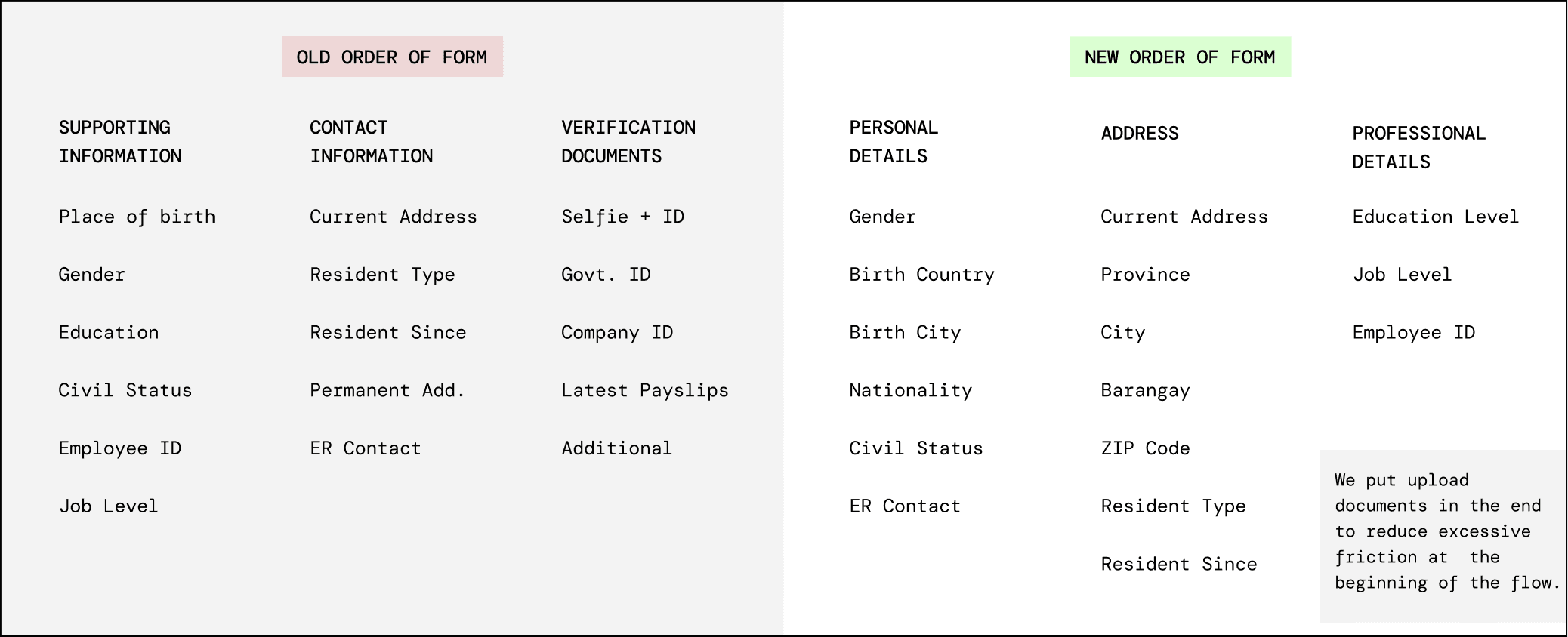 Moved document uploads to the end to ease early-stage friction